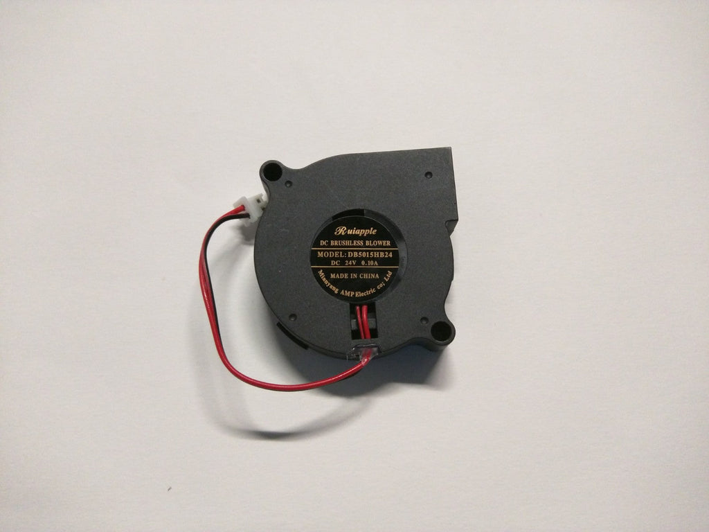 This original cooling fan part is used on flashforge dreamer and inventor 3D - Printers. It is a 24V 0.10A turbo fan with a short throw connector.