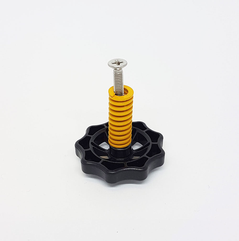 Replacement Bed Leveling Knob Kit Includes: 1x Knob 1x 25mm x 6mm (I) x 10mm (O) Spring 1x M4x42 Screw