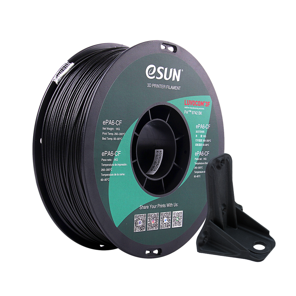ePA6-CF has been renamed to ePAHT-CF. Both names refer to the same product. ePAHT-CF (nylon carbon fiber) is a material jointly developed by eSUN and LUVOCOM. Compared with PA66, the size and electrical properties of ePAHT-CF are less affected by humidity and temperature. The strength of ePAHT-CF is higher than other eSUN nylon series prod...